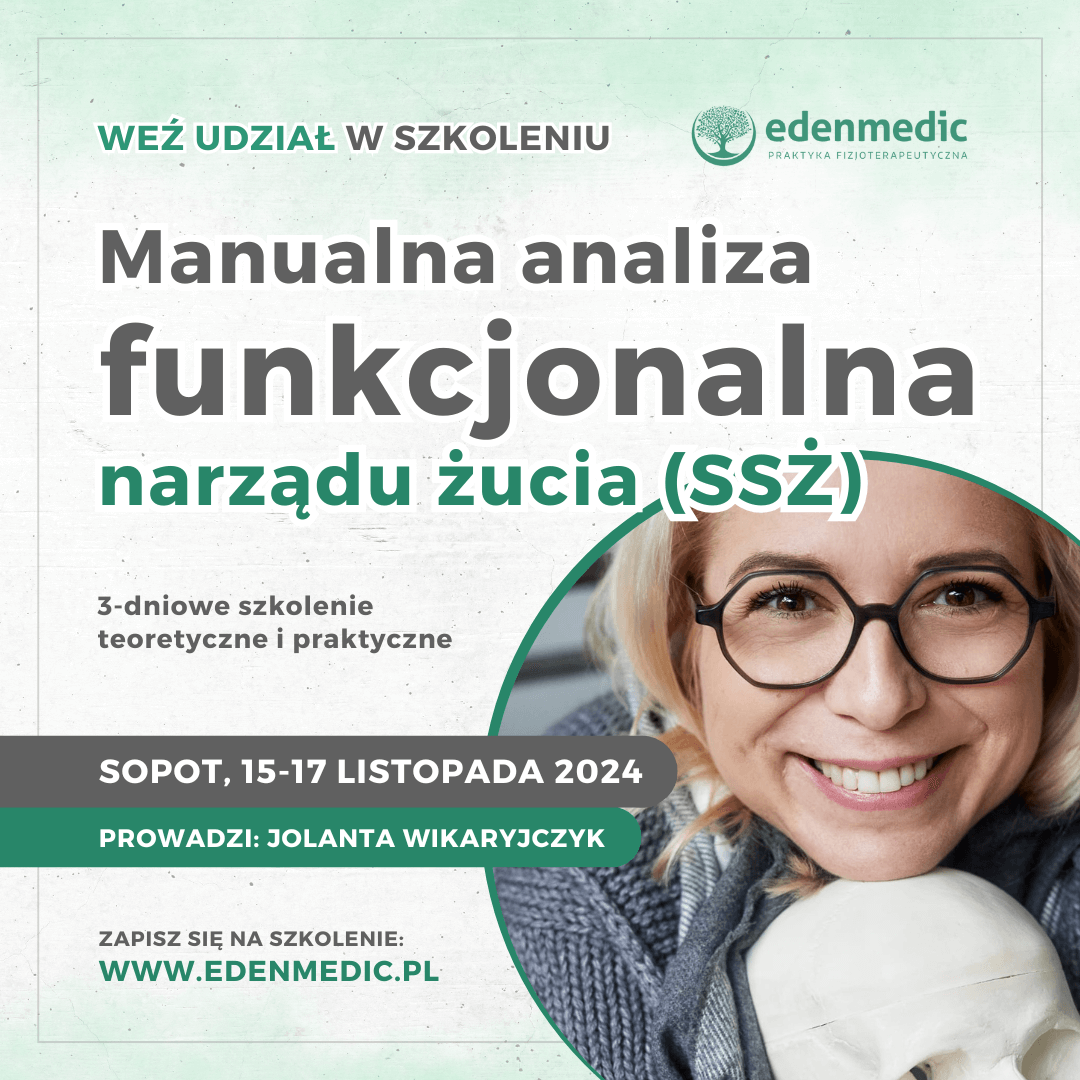 Zapraszamy na udziału w 3-dniowym szkoleniu: DIAGNOSTYCZNA ANALIZA MANUALNA NARZĄDU ŻUCIA (SSŻ), które odbędzie się w dniach 15-17 listopada 2024r. w Sopocie. Całość szkolenia poprowadzi Jolanta Wikaryjczyk.